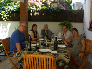 Tertúlia-esmorzar amb amics a El Masnou. D'esquerra a dreta, Juan Carlos Ingunza, Amelia Díaz, Manolo Ávila, Marcelo Díaz i Anna Rossell (juliol, 2011) / Tertulia-desayuno con amigos en El Masnou. De izquierda a derecha,  Juan Carlos Ingunza, Amelia Díaz, Manolo Ávila, Marcelo Díaz y Anna Rossell (julio, 2011)