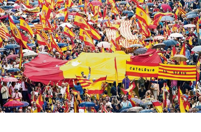 Opponents of Catalonia’s independence referendum displayed their allegiance to Spain in Barcelona last SundayTIMES PHOTOGRAPHER JAMES GLOSSOP