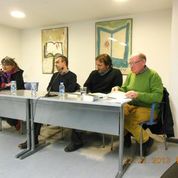 De izquierda a derecha, Anna Rossell, Lorenzo Silva, Carlos Zanón y Felipe Sérvulo (Ateneo Barcelonés, 22-02-2013)