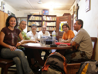 De izquierda a derecha: Begoña Simal, Cisco Ubach, Anna Rossell, Xec Marquès, Pau Arasa y Hernán Cordero en la casa de la comunidad de Conakry (septiembre 2009)