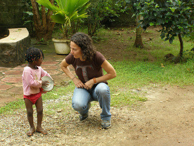 Niña en el Patio Salesiano de Conakry, con Begoña Simal (septiembre 2009)