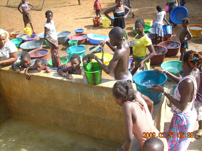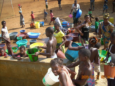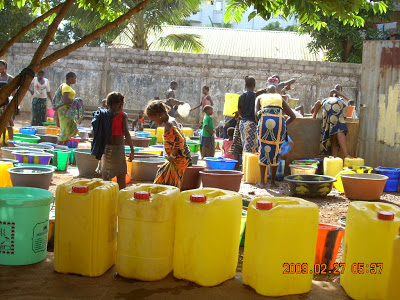 Niñ@s y mujeres esperando el turno del agua en el Patio Salesiano de conakry (febrero, 2009)