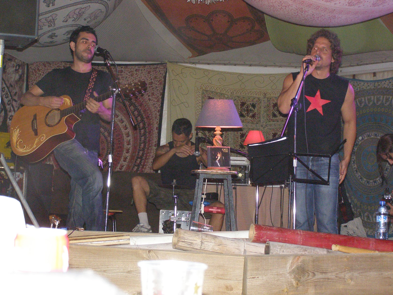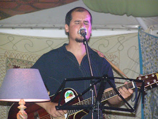 El cantautor Jorge Tylki (veu), amb Joan Tena (guitarra) i Miguel Orea (percussió)