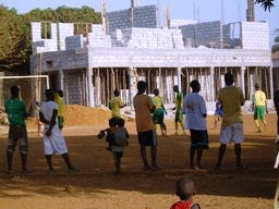Construcció del primer bloc del projecte del Casal de Joves de Conakry, al barri de Nongo (febrer, 2010) / Construcción del primer bloque del proyecto de la Casa de Jóvenes de Conakry, en el barrio de Nongo (febrero de 2010)