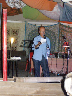 L@s poetas recitaremos en un solo bloque de quince minutos por poeta. A continuación habrá una pausa musical, que protagonizarán los maestros cantautores y fieles amigos de la poesía El More i el Chapu, entre otros, y dos acróbatas exhibirán sus acrobacioas en la arena.
